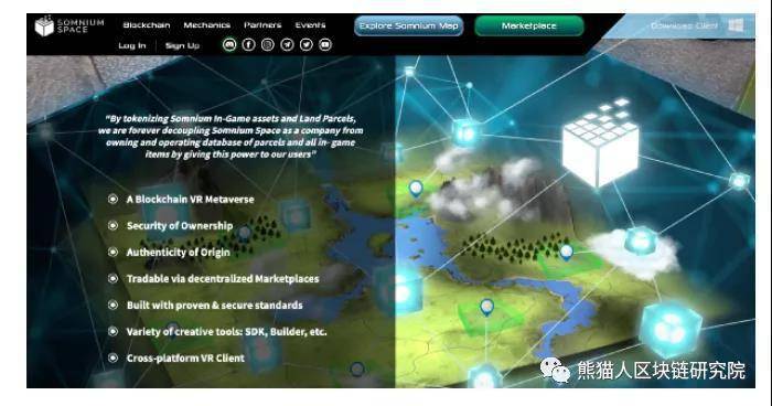 此外,The Sandbox的虚拟世界地图基于 166464个地块(408*408)汇集而成,每个地块都是ERC-721标准的NFT。地块是虚拟世界中由玩家拥有的物理空间,用于创建游戏并实现货币化。地块还可以用于发布玩家创建的游戏,也可以出租给其他玩家。每个地块都有一套预建的地形,但地块持有者可以进行地形改造。3、 Somnium SpaceSomnium Space是一个跨平台的虚拟现实世界,于2018年推出。其试图利用虚拟现实、区块链和加密货币来创建一个共享的、跨平台的虚拟世界。Somnium允许用户购买土地,设计各种建筑并导入平台,创造一个共同的虚拟宇宙。