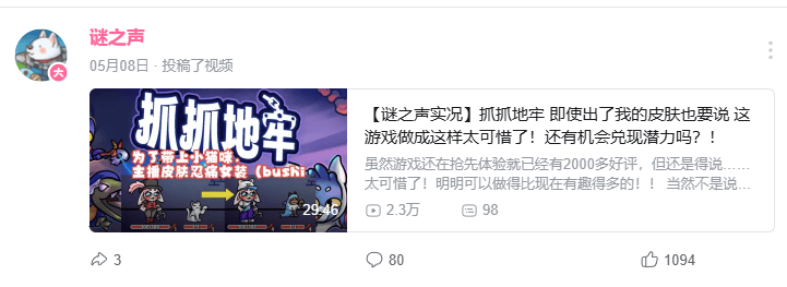 游戏看似加入了大量角色、道具、BOSS、关卡环境、钩爪类型、升级选项,但玩到后面会发现,这些差异点大多只是数值上的变化。就连曾经大力安利过《抓抓地牢》的UP主“谜之声”,也对制作组没能挖掘出这套玩法的潜力,表达了遗憾。