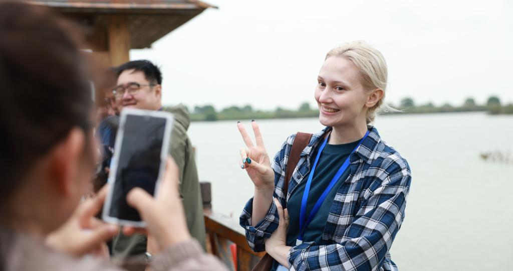 “我很关注黄河流域生态保护情况。这次我终于来到了黄河入海的地方,了解到这里有个名字,叫‘鸟类的国际机场’。”香港有线新闻记者蔡紫婷说。