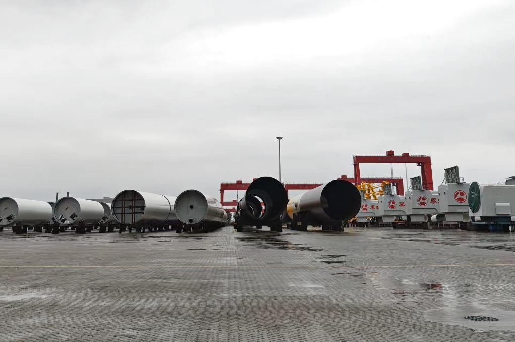 这是9月19日在东营广利港拍摄的等待发运的风电设备。新华社记者 张武岳 摄