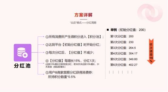 安全又透明:积分增值有“护城河”有人担心:积分能换这么多钱,平台会不会亏?别急,我店有套“安全算法”。积分分36-40期释放,每期需要平台业绩增长15%才能立即发放分红;如果没达到,系统会在第31天按实际增速结算,既保证收益弹性,又稳住资金链。
