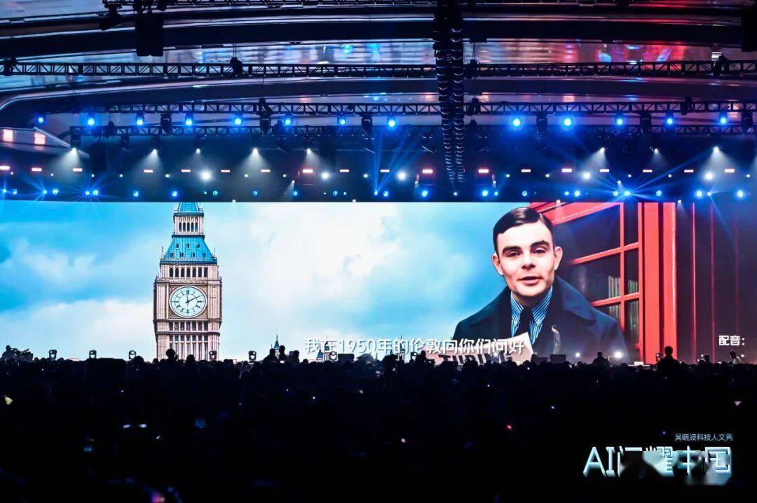 (播放AI生成的视频)你们好,我是艾伦·图灵,我在1950年的伦敦向你们问好,五年前人类发明电脑,它的体积大得像一间房子,单张卡片可存储960个byte,运算速度是每秒5000次加法运算。不过现在的我确实在想一个问题,也许它真的很荒唐,不过我还是想提出来,机器会思考吗?