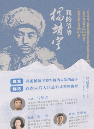 内容简介:该书由杨靖宇将军之孙马继志口述,吉林杨靖宇干部学院王莹、金华彬两位老师整理,以独特的家族视角追忆杨靖宇将军投身革命的峥嵘岁月,生动再现其矢志报国的豪迈情怀,字里行间更清晰展现出红色基因在后代血脉中代代相传的精神脉络。