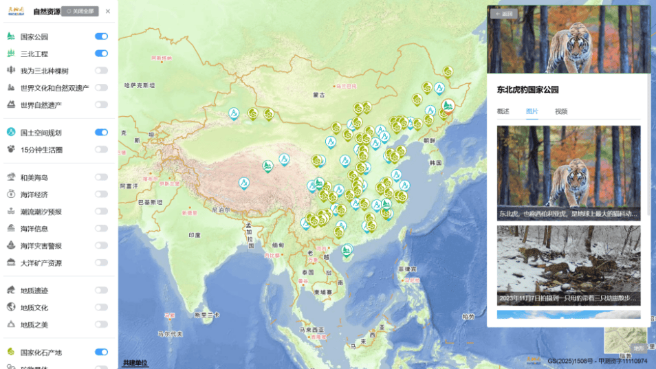 (二)开展跨部门跨领域地理信息数据融合应用。集成林草、地调、海洋等自然资源专题数据,面向社会开放国家公园、空间规划等24类专题数据。在试点省份建设省级一体化时空数字底座,联合水利、交通、教育、卫健、民政等部门完成政务专题数据汇聚治理与融合发布。