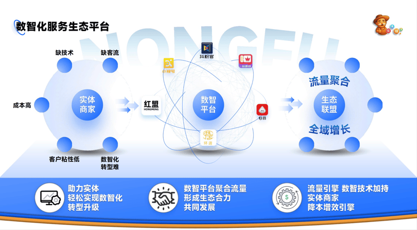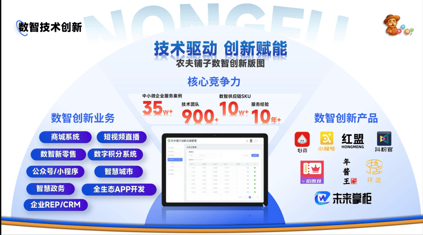 农夫铺子摒弃“技术堆砌”思维,聚焦中小微企业“缺技术、成本高、转型难”的核心痛点,打造“用得起、玩得转、见效快”的数智解决方案。自主研发未来掌柜智慧屏、AI收银系统等智能硬件,以及腾翼云、交易兔等数智服务平台,从底层技术上降低中小企业数字化转型门槛与成本。其中未来掌柜智慧屏已完成全国样板市场筹备,计划先实现五万块落地,最终突破百万台部署目标,构建生态式数字广告网络。
